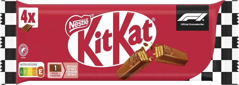 Zum Start der Partnerschaft erscheinen die Klassiker KITKAT Classic, KITKAT Mini, KITKAT Chunky und KITKAT Chunky White in einem markanten FORMEL-1-Design. Die Verpackung ist ein echter Blickfang und bringt die packende Motorsport-Atmosphäre direkt ins deutsche Süßwarenregal.