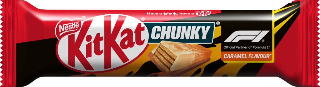 Außerdem bringt Nestlé ab April 2026 für begrenzte Zeit den KITKAT Chunky im „rasanten“ FORMEL 1-Design mit Karamell-Geschmack in den deutschen Handel. Der Riegel überzeugt mit einem auffälligen marmorierten Look, der von F1-Autos inspiriert ist und für ein besonderes Geschmackserlebnis sorgt. Entwickelt wurde er mit einer speziell von Nestlé entwickelten Technologie.