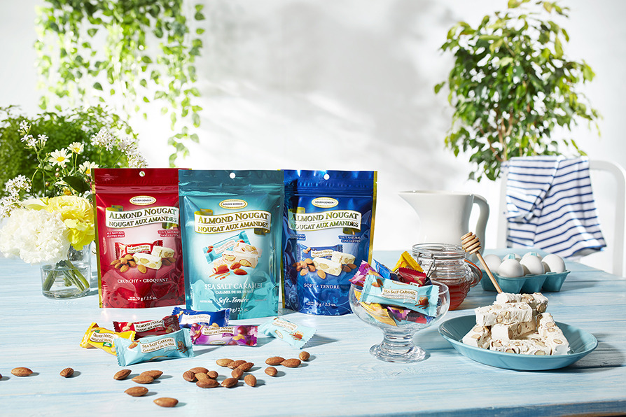 Golden Bonbon Mandel-Nougat verkörpert das reichhaltige kulturelle Erbe der Familie Mazzucco, die seit drei Generationen Nougat herstellt. Hergestellt aus hochwertigen Zutaten aus Nordamerika, darunter Mandeln, Honig, Ahornsirup, Blaubeeren und Cranberries, bietet es eine natürliche Leckerei, die frei von Transfetten, Cholesterin und Gluten ist und zudem halal-zertifiziert.